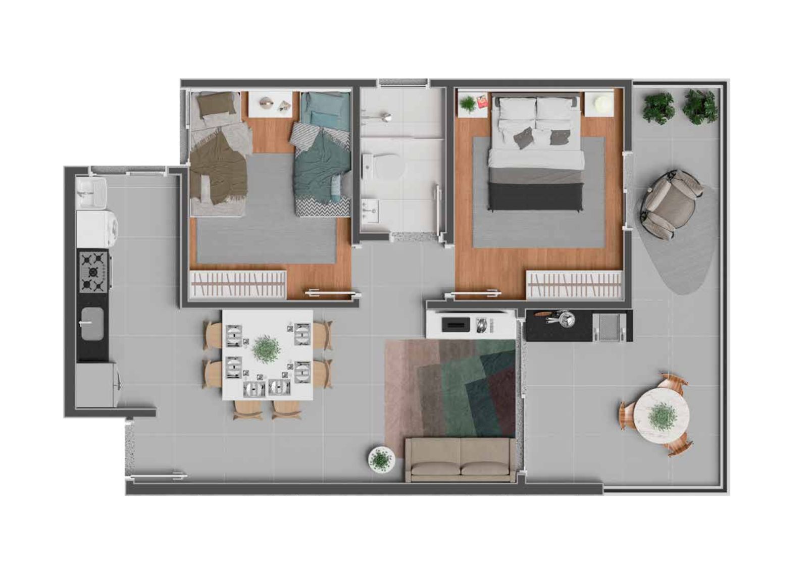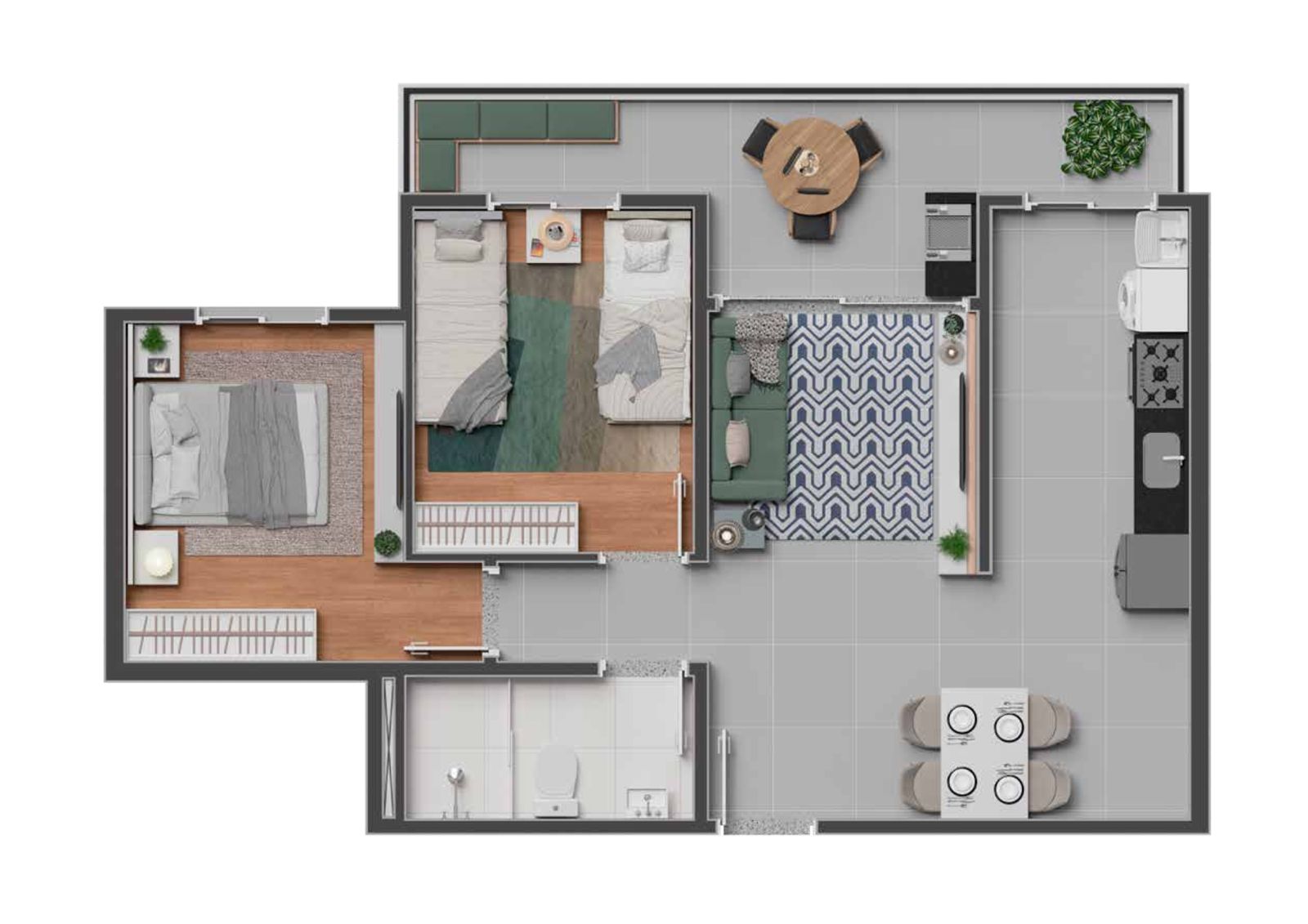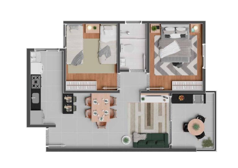 Os apartamentos de 2 dormitórios, com vaga de garagem e lazer completo, oferecem o equilíbrio perfeito entre conforto, funcionalidade e bem-estar. Um projeto moderno, seguro e planejado para transformar o seu dia a dia em uma experiência de viver melhor.